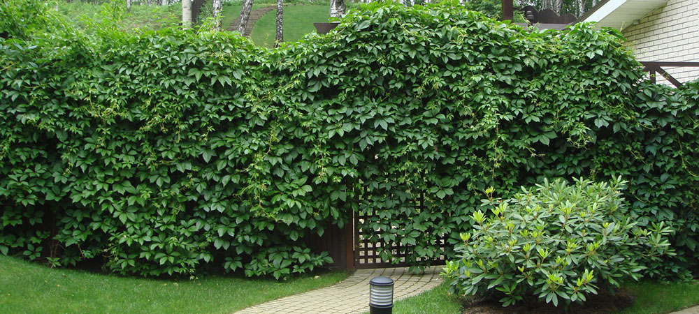 Важно знать, как посадить плющ вдоль забора или другие вьющиеся растения и лианы. Они достаточно сильно и быстро разрастаются в хорошей среде. Некоторые лианы морозостойкие, например, девичий виноград. Они дадут роскошную зелень уже в начале лета. Однако не стоит их высаживать на границе с соседями. Во-первых, растения дадут сильную тень, а во-вторых, с удовольствием займут и соседский участок.