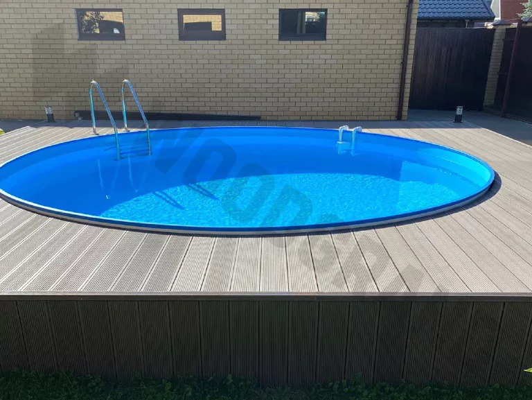 Интернет пестрит разнообразными материалами для отделки территории бассейна. Остановила свой выбор на ДПК из-за его положительных характеристик, внешнего вида, напоминающего натуральное дерево. Влагостойкость у доски на уровне, превзошла мои ожидания. Всё лето активно провели у воды, доска прослужила достойно и выглядит прекрасно.
